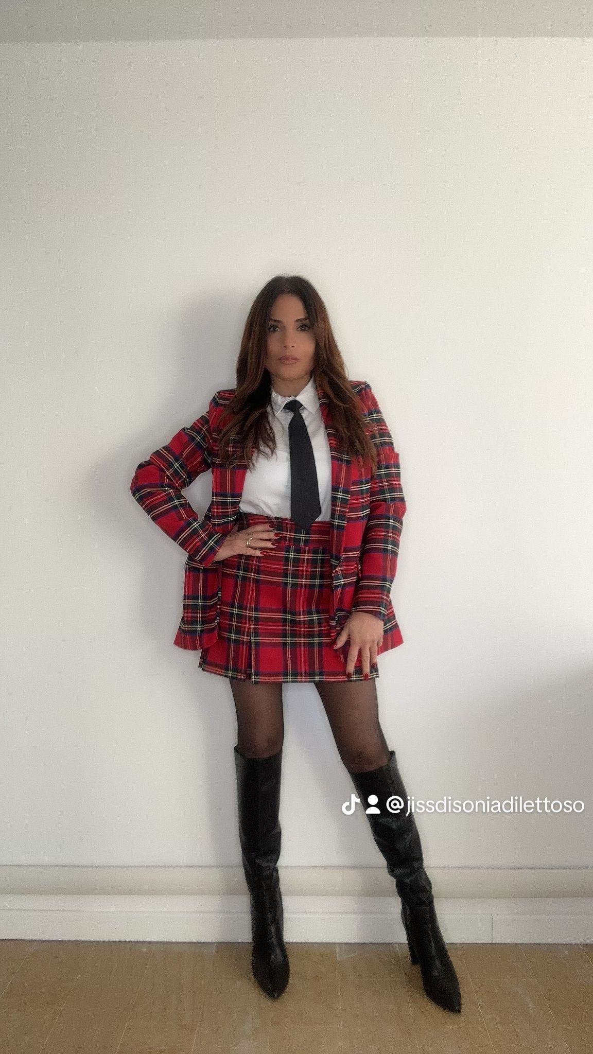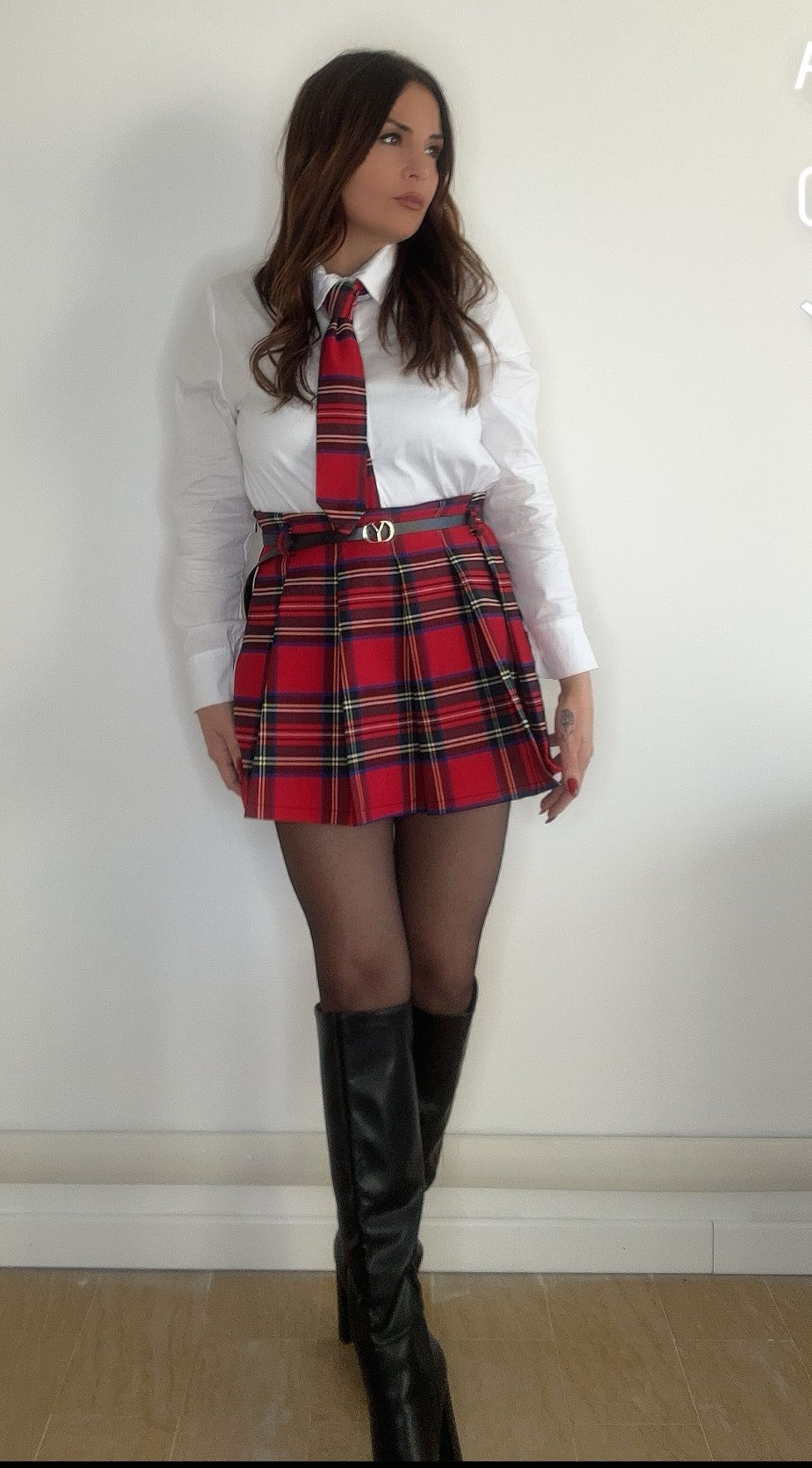 Camicia bianca crop con cravatta disponibile nera o scozzese. Taglia unica