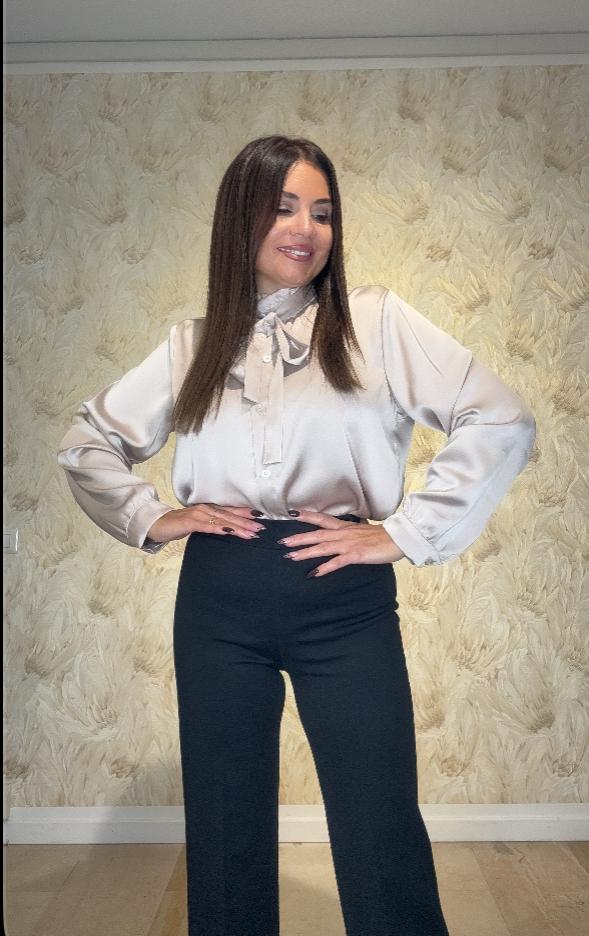 • 🎀 Camicia in satin con laccetto sul collo: Questa camicia è realizzata in satin e presenta un laccetto sul collo. Disponibile in 3 colori, offre versatilità nel tuo guardaroba.
