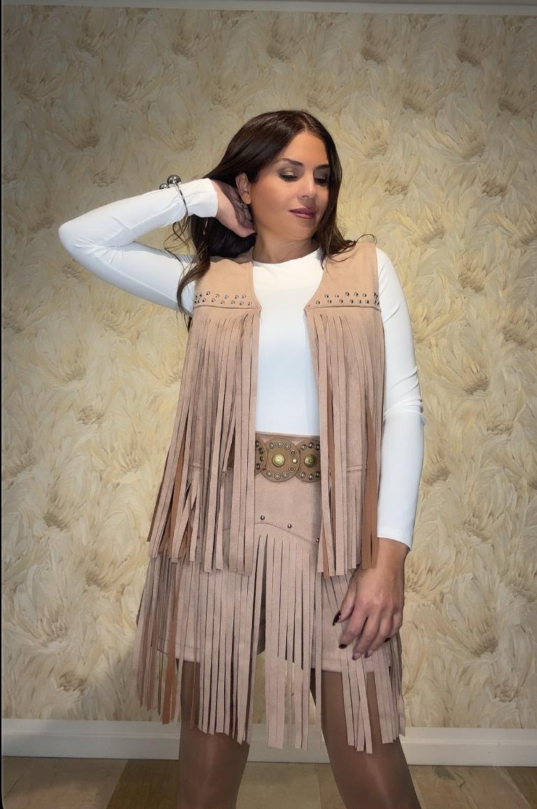 • Materiale: Il gilè è in scamosciato, offrendo comfort e stile. 🧶
