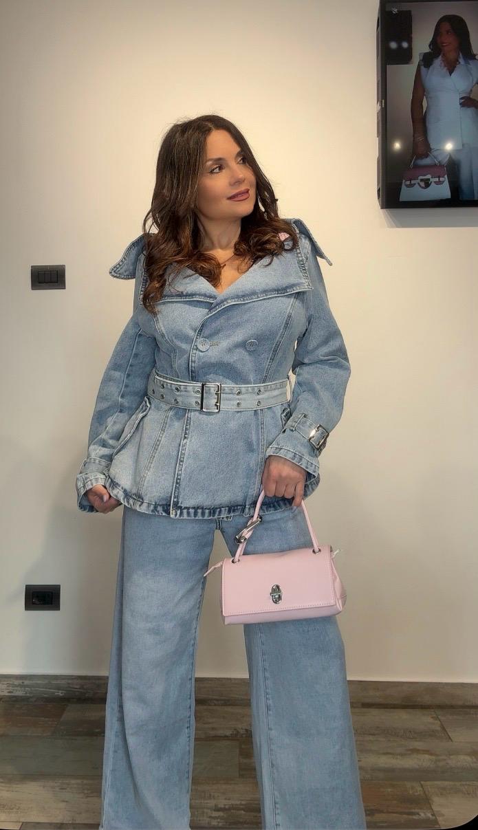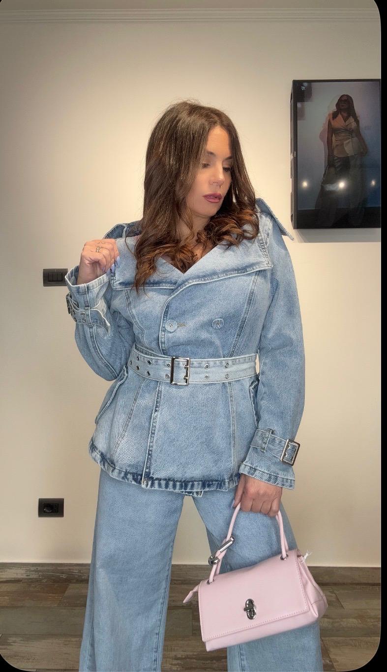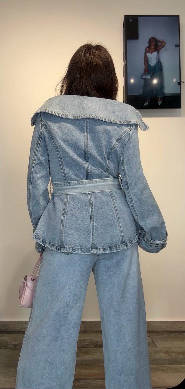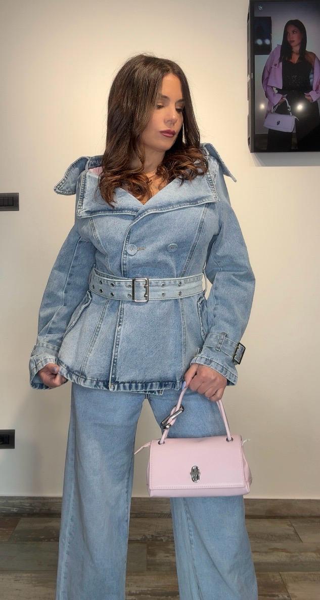 La giacca in denim strutturata è un capo essenziale per il tuo guardaroba. Disponibile in taglie moda donna, questa giacca corta con cintura stile trench aggiunge un tocco di eleganza e stile. Perfetta per look casual e chic, si adatta a vari occasioni.