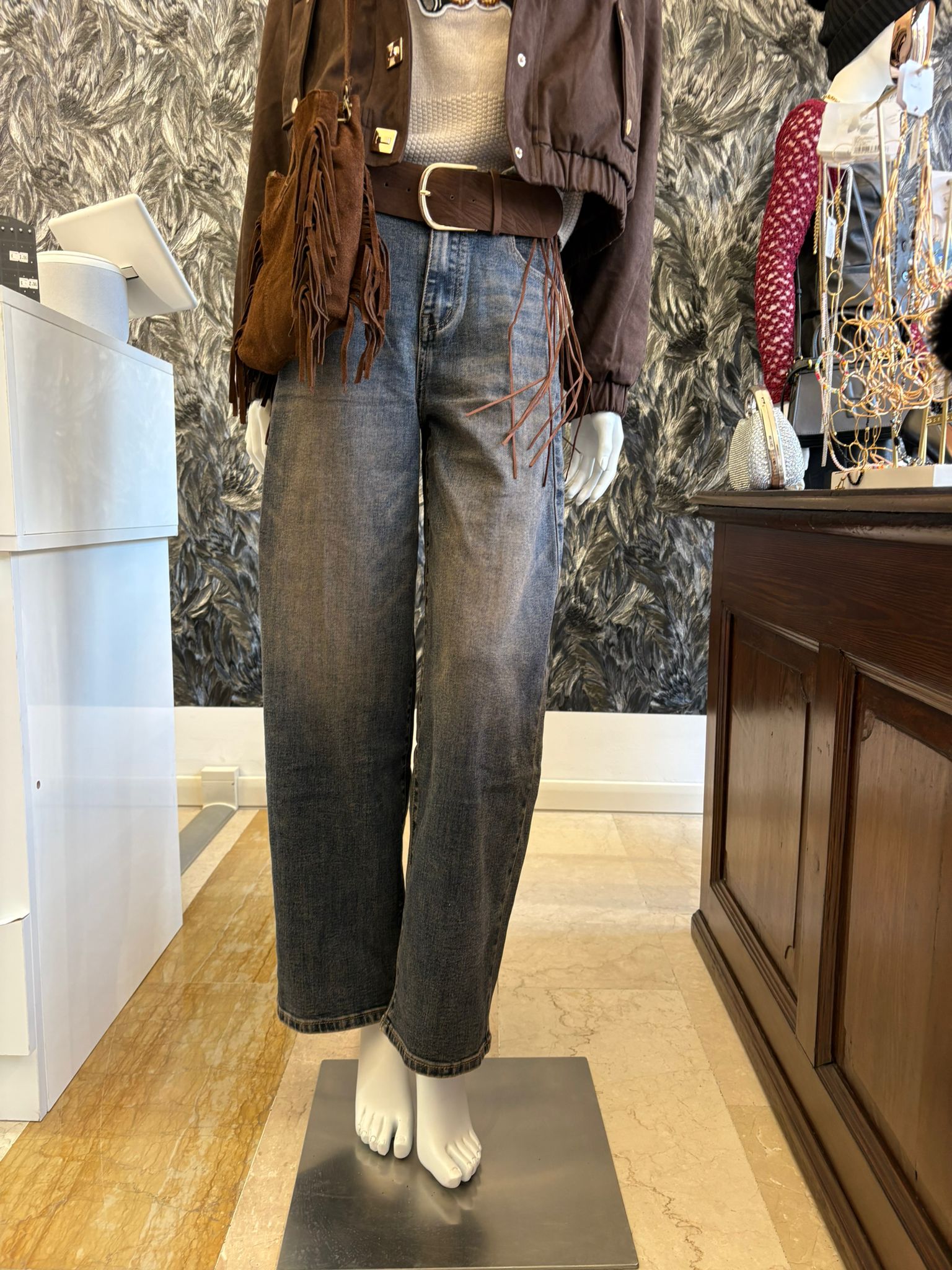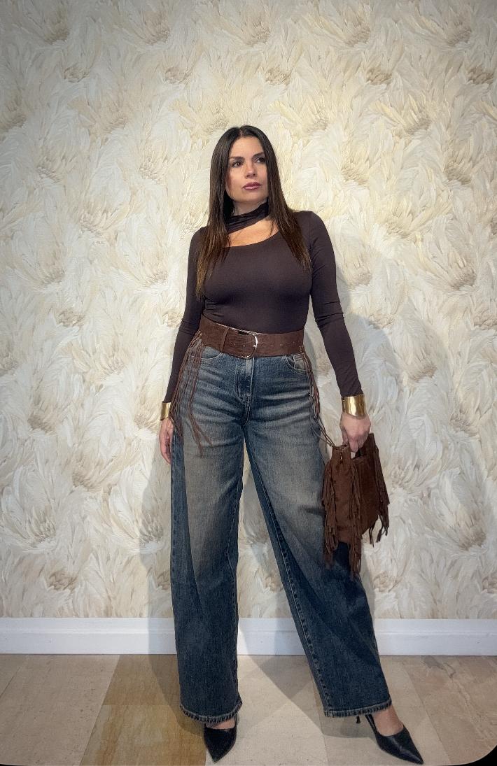 Jeans Baggy con Cintura con Frange – Questi jeans offrono un stile casual e comfortabile. La cintura con frange aggiunge un tocco di eleganza al look. Perfetti per un’abbigliamento quotidiano rilassato. 🌟