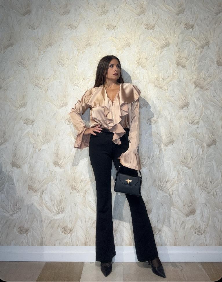 ✨ Presentiamo il Pantalone Nero a Zampa con Cintura in Vita Abbinata. Questo pantalone offre un stile elegante e moderno, perfetto per qualsiasi occasione. La cintura in vita abbinata con fibbia dorata aggiunge un tocco di raffinatezza. 🌟